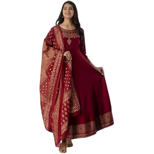 Skyasia Women’s Rayon Anarkali Kurta Set with Dupatta – Gold Printed