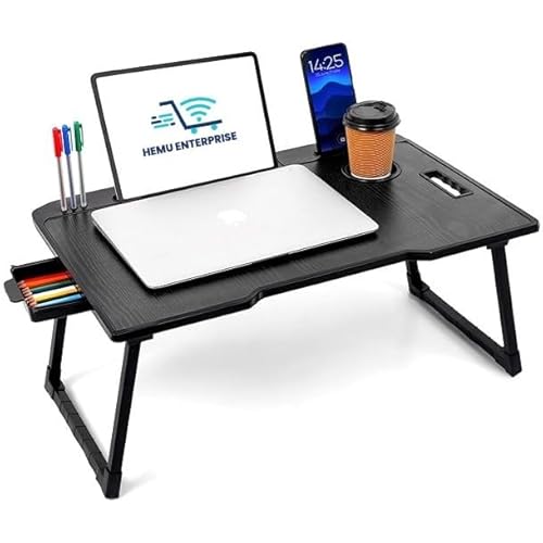 4458594 reviews for Smart Multipurpose Foldable Laptop Table with Cup Holder, Study Table, Bed Table, Breakfast Table, Foldable and Portable/Ergonomic & Rounded Edges/Non-Slip Legs (Black)