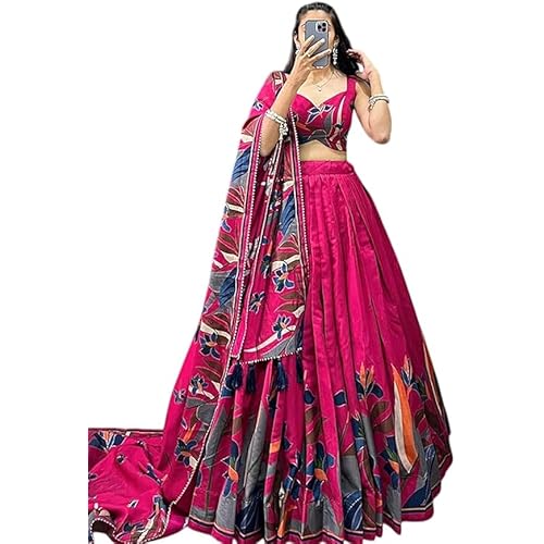 36535 reviews for Snazzy Stitch Women’s Trending Designeer Tussar Silk Lehenga Choli Print with Foil Work With Unstitched Blouse Patola Print Adorned with Foil Work For Navrati || Wedding