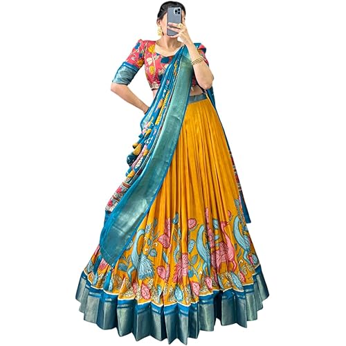 Snazzy Stitch Women’s Wedding Special Foil Worrk Tussar Silk Lehenga Choli Set || Free Size Available