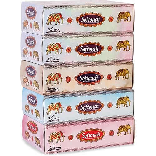 Softouch 2 Ply Facial Tissue Box | Car Tissue – Pack of 5-72 Pulls Per Box (288 Sheets)