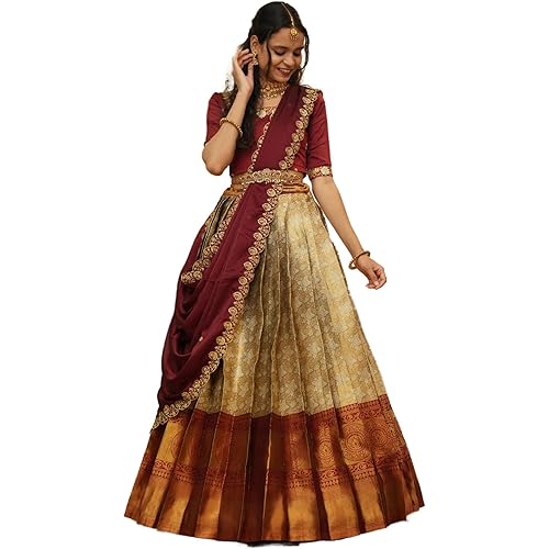 - Authentic South Indian Design: Embrace the traditional charm of South Indian culture with this half saree, featuring intricate patterns and designs that reflect the rich heritage of the region