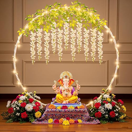 39525 reviews for SpecialYou® Ganpati Decoration Setup for Home with PVC White Decoration Stand for Backdrop for Pooja, 3Mtr Light & 6 White Wisteria, Ganesh Decorations Items for Home Decor- 8Pcs