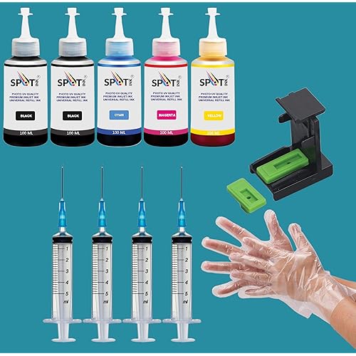 4 reviews for SPOTINK CMYKK Refill Kit with Suction Tool Combo Pack of High Yield Inkjet Cartridge Ink Refill Compatible Cartridge Printers – 100ml Per Bottle (Cyan, Magenta, Yellow, BlackX2)