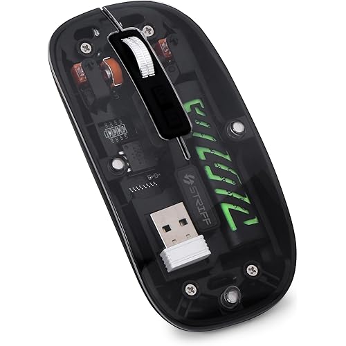 425163 reviews for STRIFF NEO-BLA Transparent Wireless and Bluetooth Rechargeable Mouse (BT5.2 + 2.5G-1600-DPI), USB Receiver,LED Battery Magic Silm for Noise-Free Clicking, Multi-Device Pair, Adjust Sensitivity