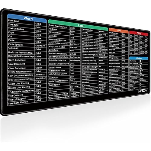 14723 reviews for STRIFF windows & office keyboard shortcuts Desk Mat | Gaming Mouse Pad Extended Size (800mm x 300mm x 2mm) Stitched Edges| Non-Slip Rubber Base|Computer Laptop|Keyboard Mouse Pad (Keyboard Shortcuts)