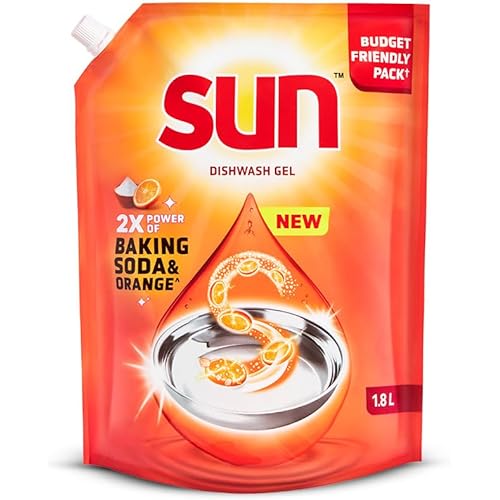 5055 reviews for SUN Dishwash Liquid, 1.8L, for Quick & Easy Dishwashing, with Baking Soda & Orange, Less Scrubbing, more Cleaning, Gentle on Hands