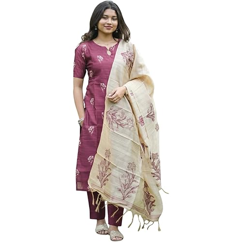 Sun Fashion And Lifestyle Kurta Sets for Woman | Kurti Set | Women’s 3 Piece Kurta Pant Dupatta Set | Chanderi Silk Kurta Woman | Elegant Suit for Women | Dupatta