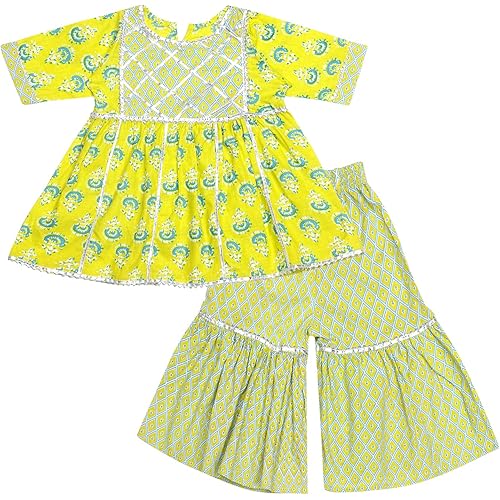 superminis Baby Girl’s Cotton Sanganeri/Floral Printed Frock Style Kurti With Printed Sharara Dress Clothing Set