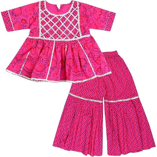 425738 reviews for superminis Baby Girl’s Cotton Sanganeri/Floral Printed Frock Style Kurti With Printed Sharara Dress Clothing Set