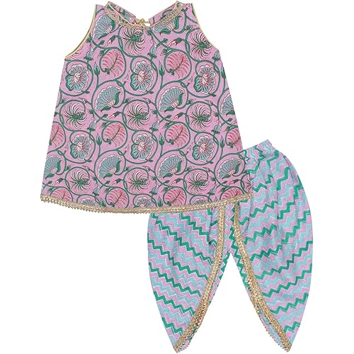 385351 reviews for superminis Baby Girls Sangakari Print A Line Style Sleeveless, Round Neck Kurti and Dhoti with Elastic Closure Ethnic Dress