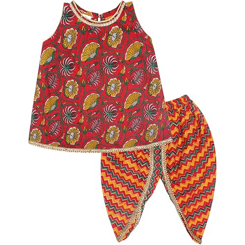 385351 reviews for superminis Baby Girls Sangakari Print A Line Style Sleeveless, Round Neck Kurti and Dhoti with Elastic Closure Ethnic Dress