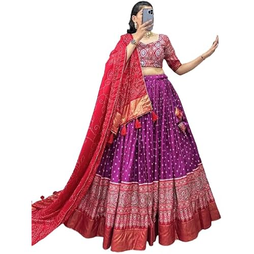Suppar Sleave Woman Soft Dola Silk Bandhani Foil Print Lehenga Choli Set