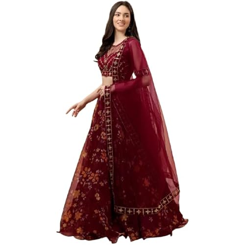 33524 reviews for Suppar Sleave Women’s Ethnic Wear Floral Digital Printed Organza zari Sequin Work Semi-Stitched Lehenga Choli With Dupatta