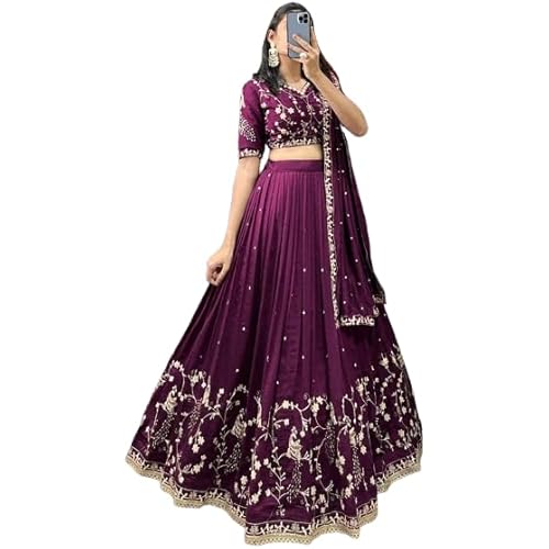 46511 reviews for Suppar Sleave Women’s Embroidered Vichitra Silk Lehenga Choli Dupatta Set Semi-Stitched Blouse and Fit & Flare Style