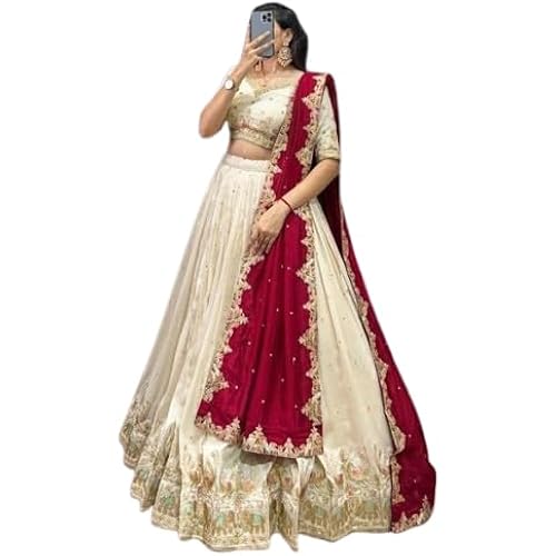 40550 reviews for Suppar Sleave Women’s Vichitra Silk Embroidered Semi Stitched Lehenga Choli With Dupatta
