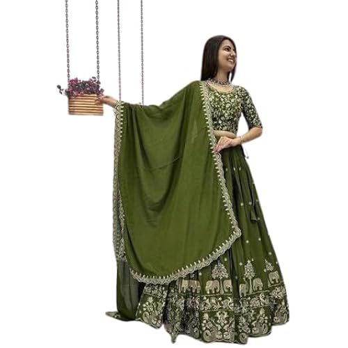 - Festive Outfit: This traditional lehenga set comes with a flowing skirt, fitted choli and matching blouse perfect for festivals and celebrations.