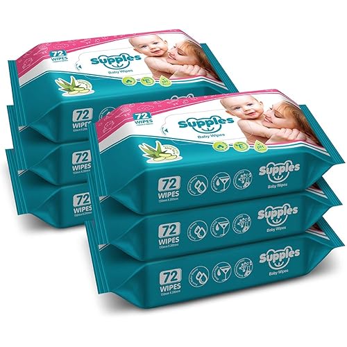 Amazon Brand – Supples Baby Wet Wipes | 432 Wipes | 72 Wipes x 6 Packs | Enriched With Aloe Vera and Vitamin E | Alcohol-Free and Paraben-Free | Pure Water-Based formulation