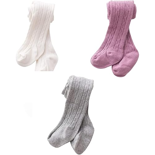 SYGA Baby Tights Soft Cotton Leggings For Girls Toddler Solid Knit Stockings Socks Warm Crochet Pants Pack Of 3