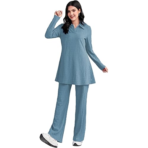 19 reviews for TADKEE Women’s Solid Color Two-Piece Set | Long Sleeve Top & Wide Leg Pants Co-ord Set