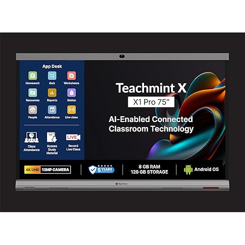 Teachmint X1-Pro 75 Inch Premium Interactive Flat Panel | Connected Classroom Tech | True 4K UHD | Android OS, 8GB RAM, 128GB ROM |13 MP 4K Camera, 8 Array Mic & 30W Speakers | 5 Year Warranty (75″)