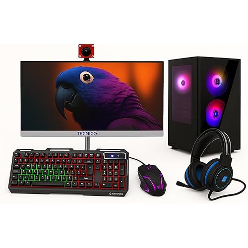 TECNICO Gaming Desktop PC Set, i5-4570, 8GB DDR3, 256GB SSD, 2GB Graphics, 22-inch IPS Borderless Monitor, RGB Keyboard Mouse Headphone, Webcam