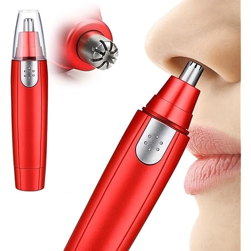 TEKCOOL 3-in-1 Nose, Ear & Eyebrow Hair Trimmer for Men & Women – Waterproof, Painless Facial Hair Remover with Dual-Edge Blades – Compact, Battery-Operated Grooming Tool (Red)
