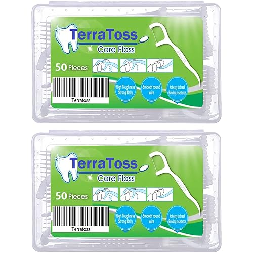 44541 reviews for TerraToss Dental Floss Picks [100 Pcs] | 2 Box of 50 Pcs each | Premium Toothpicks Box for Fresh Breath, Clean Teeth & Healthy Gums