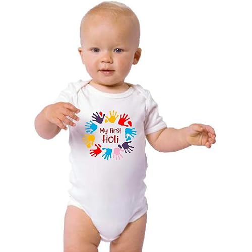 - “My First Holi” themed baby onesie perfect for celebrating a newborn’s first Holi festival.