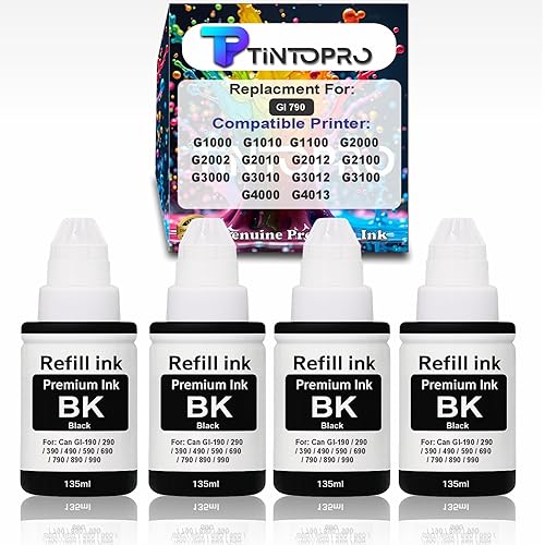 5051 reviews for TINTOPRO GI-790 Compatible Refill Ink – High Yield Black Color Ink Compatible for G1000, G1010, G2000, G2010, G3000, G3010 Printers | Smooth & Vibrant Prints (Gi 790_BK_4pc. x 135ml)