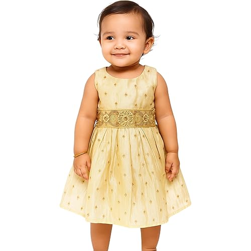 - 🌼 Premium Tissue Polyester Fabric – Soft, lightweight, and smooth with a subtle festive shimmer that adds a touch of luxury to your baby girl’s traditional look. onam frock for kids girls Durable polyester fabric that retains shape and shine; recommended dry cleaning for long-lasting use.