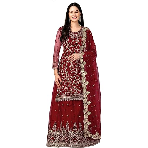 TRENDMALLS Women’s Net Embroidery Salwar Suit Set Kurta Lehenga with Dupatta Kurta Set for Women