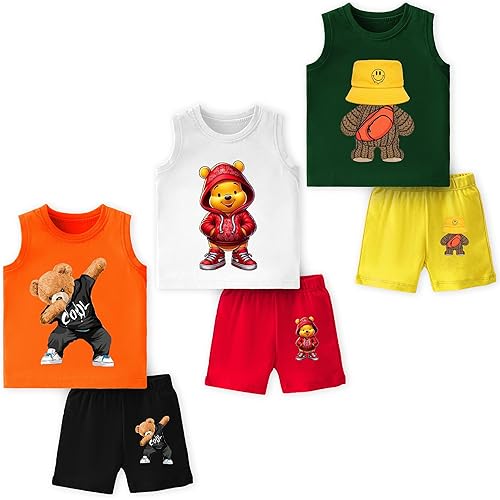 425133 reviews for TS LAVI TAVI Baby Cotton Clothing Set | Sleeveless T-Shirt & Shorts Combo | Summer Wear for Boys & Girls | Soft Breathable Fabric | Multicolor Pack of 3