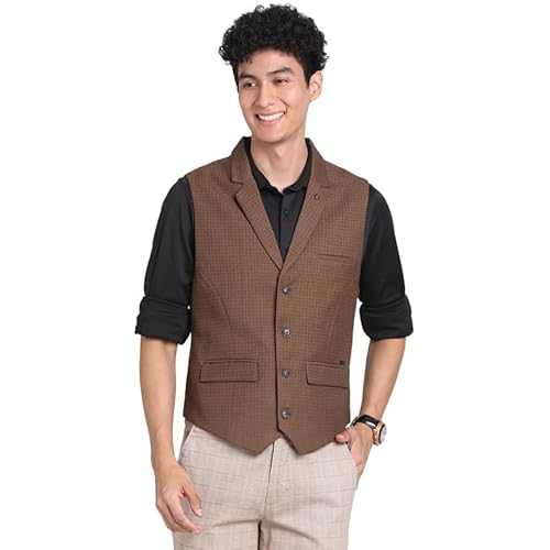 Turtle Men Poly-viscose Brown Self Design Slim Fit Casual Waistcoat