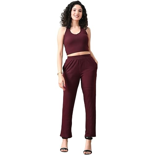 UNIfringe Women’s Ribbed Co-ord Set | Sleeveless Crop Top & Straight Pants | Soft Stretchy Polyester