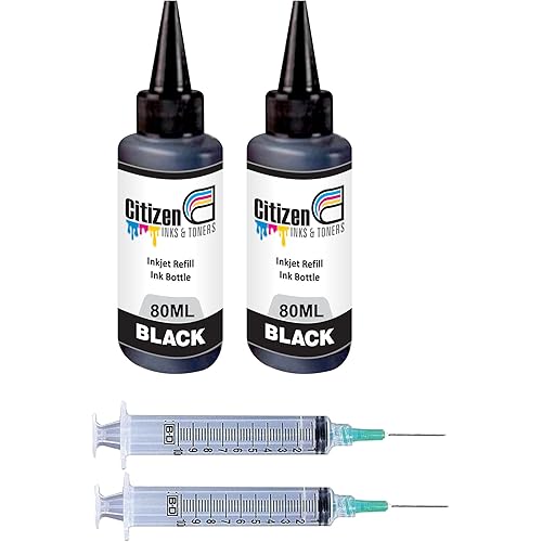 Universal Refill Ink for Ink Cartridge Refilling | Compatible for All Inkjet Printers | Perfect Vibrant Shades | High Page Yeild + Syringe – 80ml Per Bottle (2 Black ink 2 syringe)