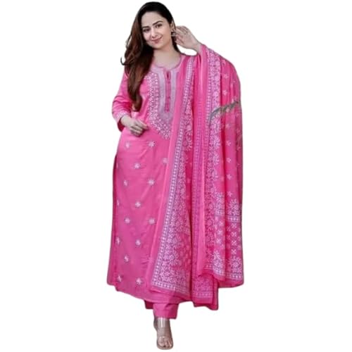 UPSARA FASHION Traditional Embroidered Rayon Kurta Set with Dupatta, Floral Design, Full Length