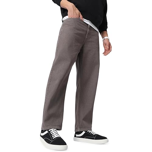 Urbano Fashion Men’s Loose Baggy Fit Washed Jeans Non-Stretchable
