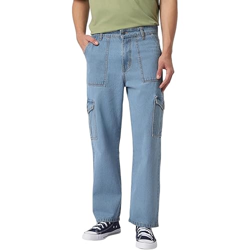 Urbano Fashion Men’s Loose Fit Cargo Jeans with 6 Pockets Non-Stretchable