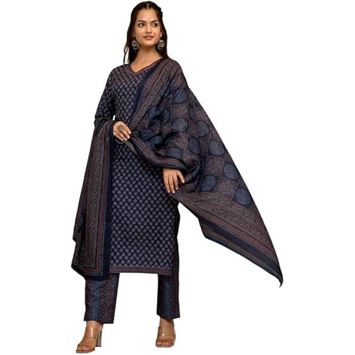 Vaamsi Women’s Ethnic Motifs Straight Printed Kurta Pant With Dupatta | kurta sets for woman