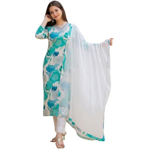 16 reviews for Vaamsi Women’s Floral Straight Printed Kurta Pant With Dupatta Set | kurta sets for woman