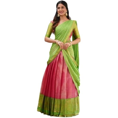 Care Instructions: Dry Clean Only Women's Half Kanjiveram Silk Saree with Zari Work Women's South Indian Half Saree Kanjiveram Silik Fabric