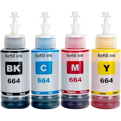 VERENA 664 Refill Ink for Epson L130, L360, L380, L361, L565, L210, L220, L310, L350, L355, L365, L385, L405, L455, L485 Printers C/M/Y/Bk (70Ml X4)