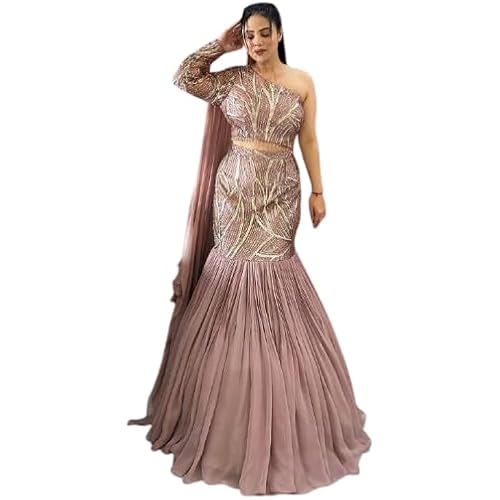 VIBRANTATTIRE Boutique Style Faux Georgette Sequin Work Ruffle Lehenga Set – Full Stitched 6m Flair with Cancan, Blouse up to 44″ & Attached Ruffle Dupatta
