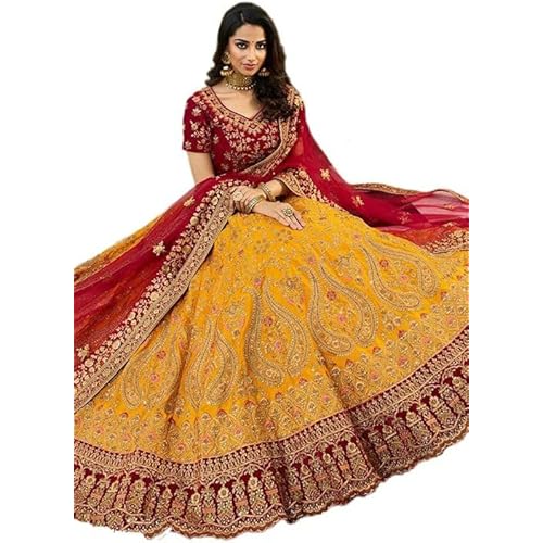13 reviews for Vidhya Enterprise Palak Yellow Lahenga Choli with Dupatta Velvet Floral Print Semi Stitched Wedding Bridal Latest Lehenga Choli Set For Women, Free Size