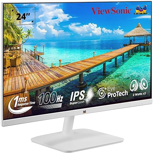 4784 reviews for ViewSonic (Originated from USA) 24 Inch Full HD IPS White Slim Monitor 100Hz,1ms, AMD Free Sync, 3 Side Bezel Less, Dual Speaker, Wall Mount, Eye-Care, Flicker Free, Srgb105%,HDMI, VGA – VA2432-MH-W
