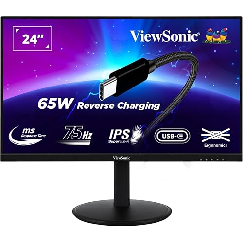ViewSonic 24 Inch IPS FHD Professional Monitor with USB Type-C One Cable Solution 65W Laptop Charge back,Height Adjustment, Eye Care, Bezel less, Wall Mount ,2xSpeaker, HDMI,USB-C,104%sRGB -VG2409-MHU