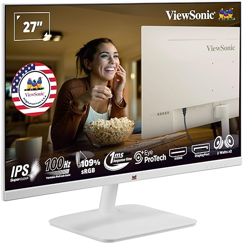 ViewSonic (From USA)68.58 Cm (27″) White Monitor Full HD IPS |100Hz |1ms| 2X2W Speakers | EyeProtech+ | Win. & mac OS tested | VESA Compatable |Tilt-5º / 20º | sRGB 109% | HDMI1.4 | VGA | VA2732-MH-W
