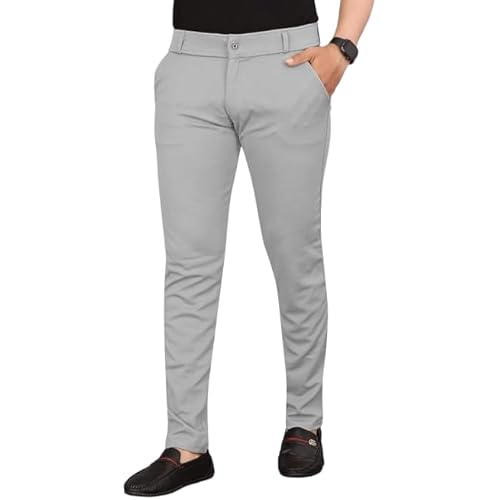 VIJETA Garments for Men Lycra Blend Formal Trousers ? Smart Fit Office Wear Pants with Elastic Waistband & Zip Fly