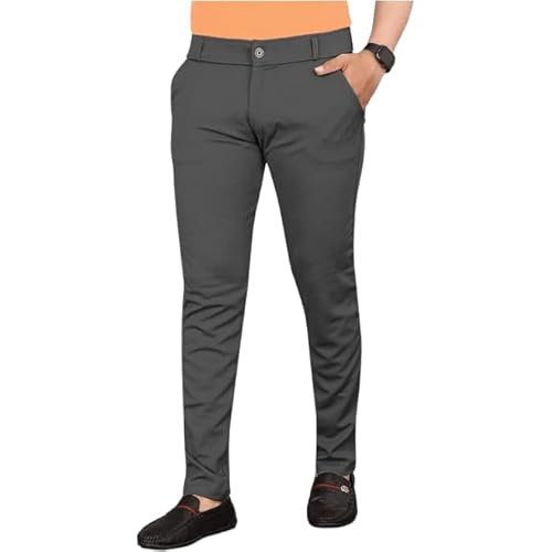 VIJETA Garments for Men Lycra Blend Formal Trousers ? Smart Fit Office Wear Pants with Elastic Waistband & Zip Fly